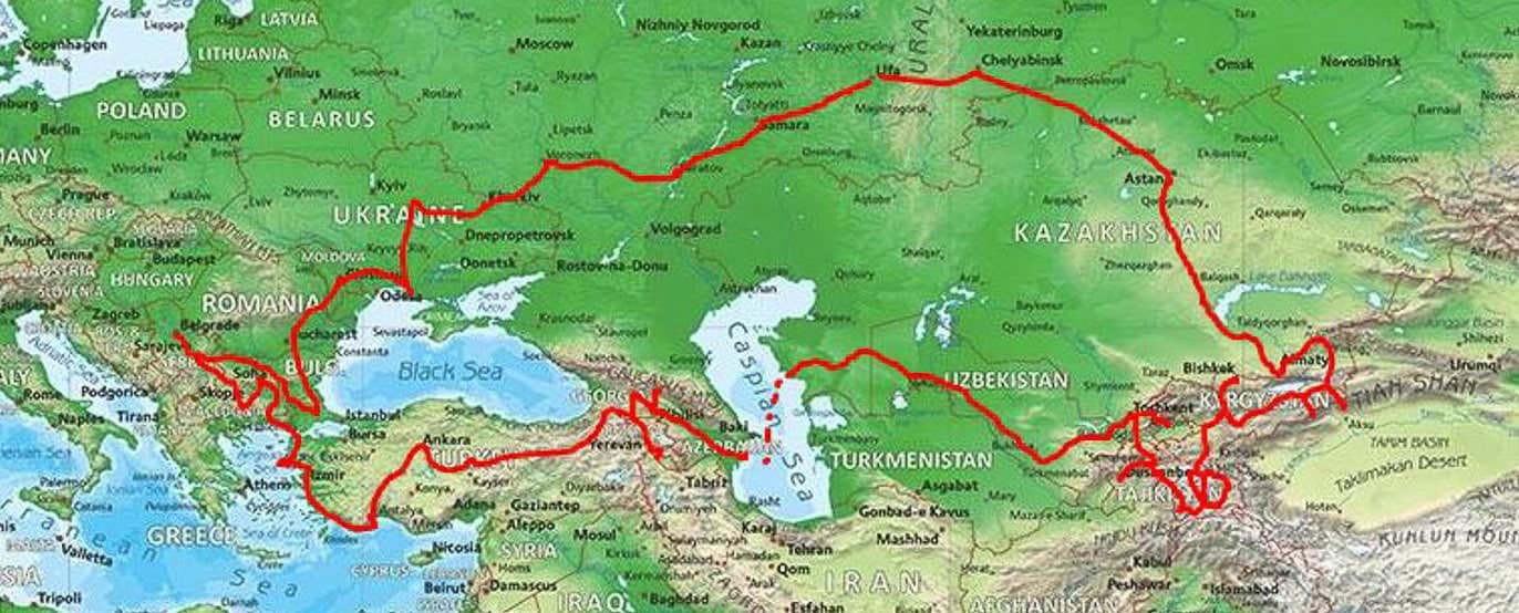Roughly following one of the Silk routes from western Asia to the Chinese border, I rode through Turkey, Georgia, Armenia, Azerbaijan, Kazakhstan, Uzbekistan, Tajikistan, Kyrgyzstan, Russia, Ukraine, Moldavia, Romania and Bulgaria, visiting historic and natural treasures of the Central Asia. Back in the days, this was a very prosperous region dotted with important cities, some of the worlds largest at the time.